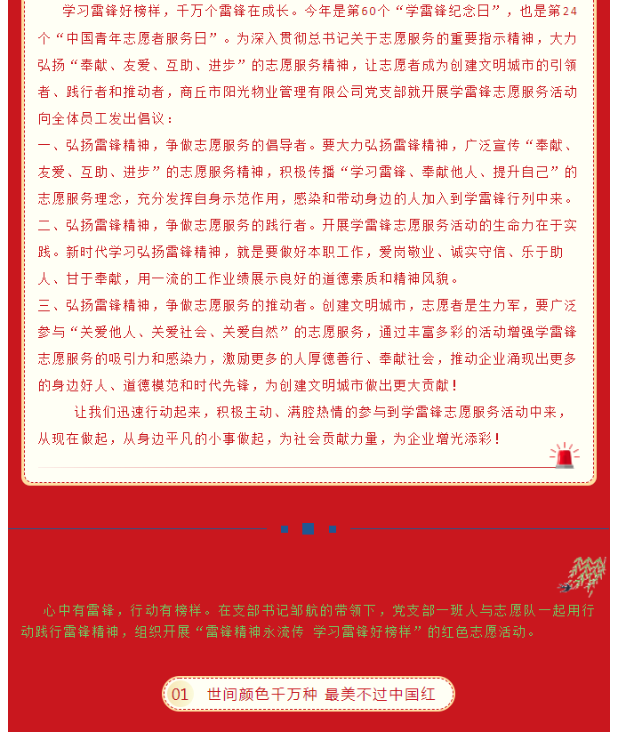 愛的傳承 | 陽(yáng)光物業(yè)黨支部組織開展“雷鋒精神永流傳 學(xué)習(xí)雷鋒好榜樣”特別活動(dòng)