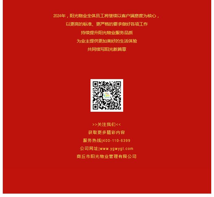 陽光物業(yè)成立于2003年5月,專注物業(yè)服務行業(yè)20余載,陽光物業(yè)現為河南省物業(yè)管理協(xié)會副會長單位、商丘市物業(yè)管理協(xié)會副會長單位,公司注冊資金1020萬元,陽光物業(yè)連續(xù)多年被河南省及商丘市評為先進企業(yè)、優(yōu)秀企業(yè)。