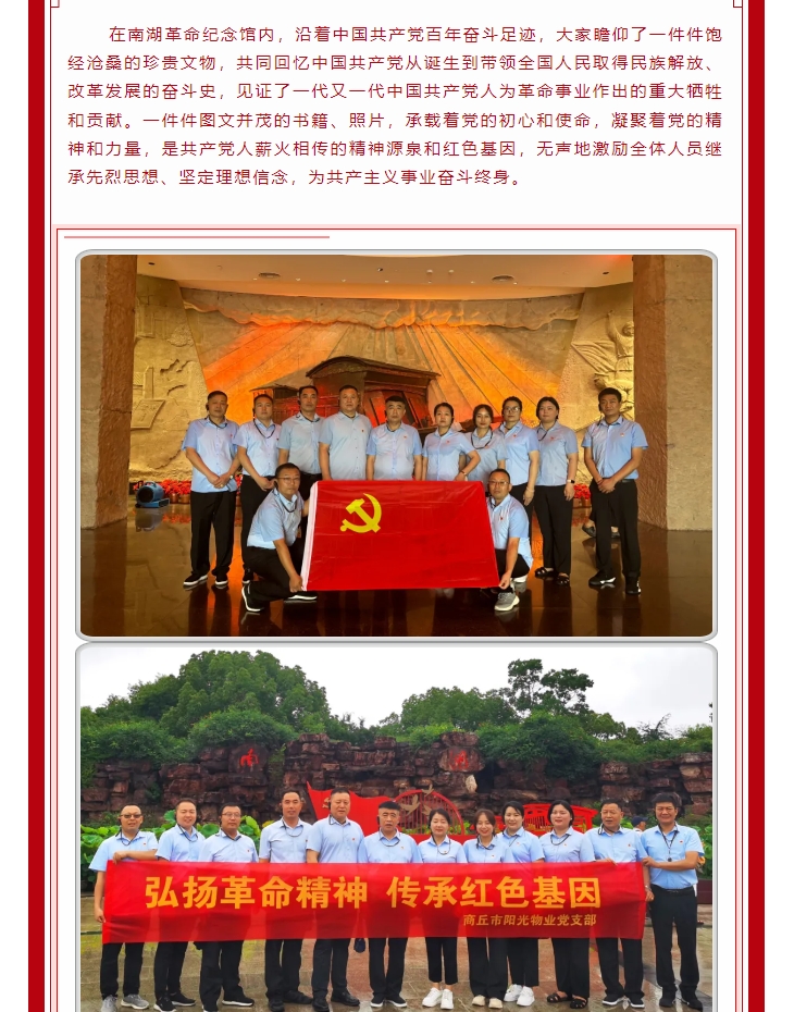 黨建活動|陽光物業(yè)黨支部組織開展“弘揚革命精神 傳承紅色基因”系列主題活動