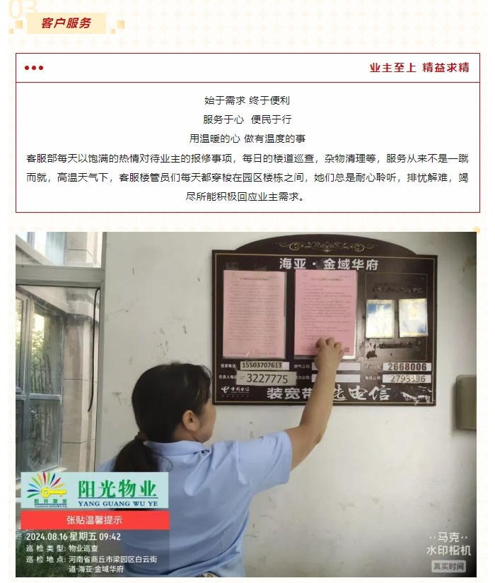 陽光服務|8月服務月報