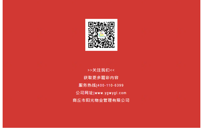陽光物業(yè)成立于2003年5月,專注物業(yè)服務行業(yè)20余載,陽光物業(yè)現(xiàn)為河南省物業(yè)管理協(xié)會副會長單位、商丘市物業(yè)管理協(xié)會副會長單位,公司注冊資金1020萬元,陽光物業(yè)連續(xù)多年被河南省及商丘市評為先進企業(yè)、優(yōu)秀企業(yè)。