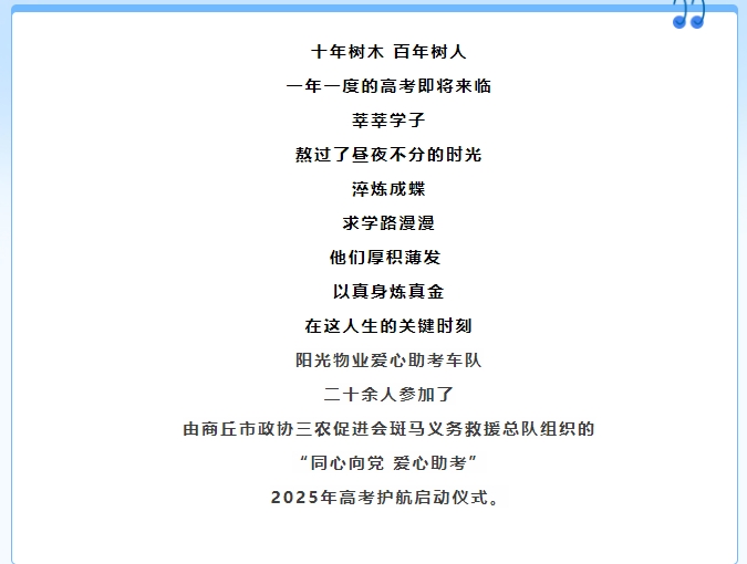 陽光物業(yè) | “同心向黨 愛心助考”啟動儀式
